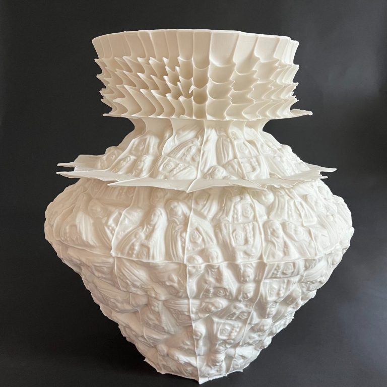 Shaping plaster molds are how my porcelain pieces are built. Many pieces are stacked, mummified and prepared for pouring. The object develops as the depth is molded from negatives into positive shapes. Then, voila! (or not). A lifetime’s supply of experiences shapes each successful art object.